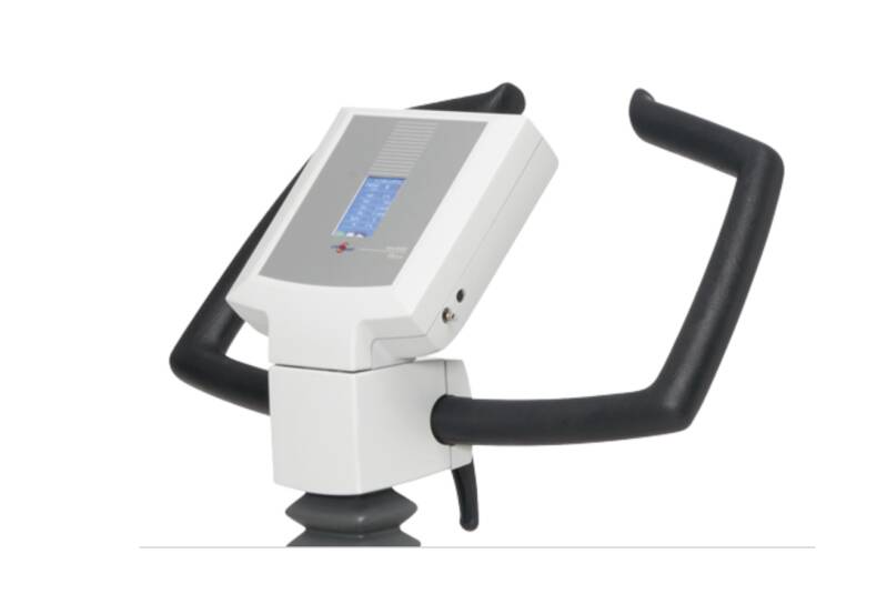 Der Messkopf ist m 180° drehbar und unterstützt sowohl den Remotebetrieb mit den Mastergeräten PC und EKG und den Standalone-Betrieb über benutzerdefiniertes Stufenprotokoll und manueller Laststeuerung. Hierbei werden alle wichtigen Belastungsdaten (Blutdruck, Herzfrequenz, Tretfrequenz, Hinweis für korrekte Tretfrequenz) in kompakter Form auf dem Display dargestellt. Dazu lässt sich die Blutdruckmessung und die elektrisch verstellbare Sattelhöhe bequem über das Touch-Display bedienen. Optional gibt es hier auch die Blutdruckmessung mit QRS-Trigger und einen SpO2 Anschluss.